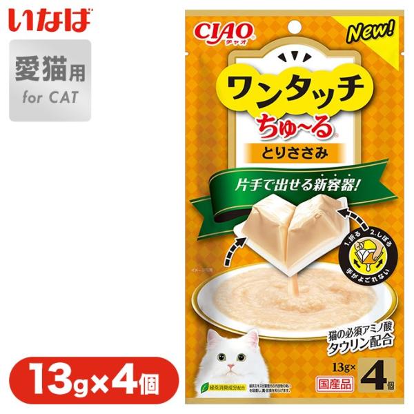 いなば 猫 ワンタッチ ちゅーる(ちゅ〜る) ささみ 13g×4個 □ 国産 - 猫 の 必須 アミノ酸